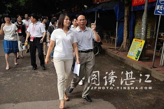 碧海银沙网5月22日讯 5月19日下午,赤坎区区长龙小艾等领导率领该区人大代表一行15人,在湛江师范学院党委书记梁英等陪同下,就湛师北门和寸金四横路“ 脏、乱、差”的整治问题,进行了视察。