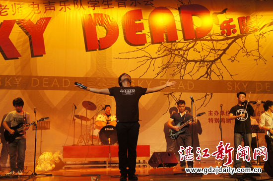 湛江新闻网5月10日讯 周正基老师电声乐队之一“SKY DEAD”(天行者乐队)于9日晚在湛江师范学院音乐厅举行了演唱会。