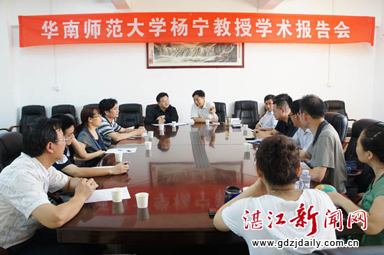 湛江新闻网5月10日讯 5月3日,华南师范大学杨宁教授应邀于湛江师范学院燕雷楼四楼教科院会议室作学术报告。湛江师范学院教科院党委王列盈书记、许占权副院长及部分湛江师范学院教科院教师出席本次报告会。报告会由王列盈书记主持。