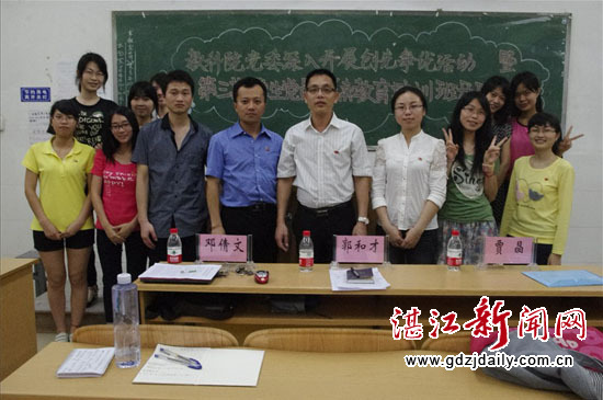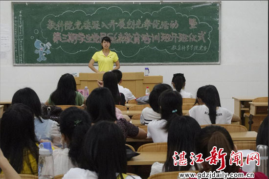 湛江新闻网4月16日讯 4月14日晚,湛师教科院党委于燕雷楼402教室举行以“学用互促,创先争优”为主题的教科院党委深入开展创先争优活动暨第三期学生党员后续教育培训班开班仪式。湛师教科院党委郭和才副书记,辅导员邓倩文老师、贾晶老师出席了开班仪式。全院学生党员参加了活动。郭和才副书记作了开班动员。院学生党建工作委员会干部宣读了培训班的课程安排和学习要求。学生党员代表分享了对近期人民日报评论员文章《自觉遵守党纪国法》和《坚决拥护党中央的正确决定》的学习体会。