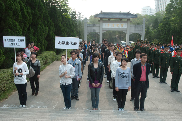 湛江师院两百多名学子参加湛江市清明祭奠革命先烈大会