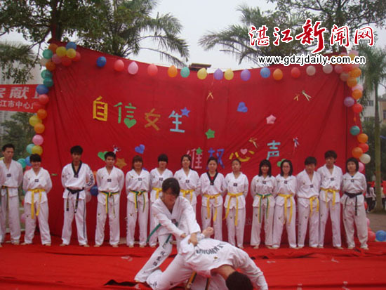 湛江新闻网3月18日讯 3月18日上午,由体科院学生会女生部与权益部主办的主题为“自信女生,维权心声”女生节及女子防卫术的活动在雷阳区体育训练馆门前举行。其中,校学生会副主席邹长俊及各二级学院的学生会主席出席现场。