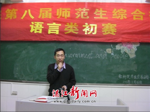 湛江新闻网3月18日讯 为了提高学生的师范生技能,使学生能在未来的讲台上更好地展示自己的才华,3月17日晚,湛师教科院在湛师燕雷楼412教室举办了第八届师范生综合技能大赛语言类之双语教与学模拟课堂初赛。湛师外国语学院刘晓玲、麦晓萍老师,教科院游柱然博士应邀出席了本次比赛。