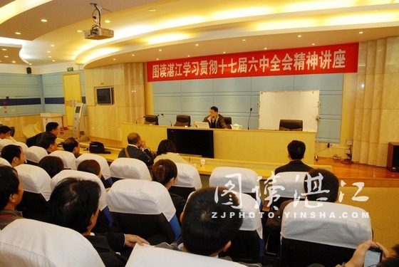 碧海银沙网12月22日讯 日前,《图读湛江》特邀请湛江市委宣讲团成员、湛江师范学院龙鸣教授开设专题讲座《文化变法与文化自救——党的十七届六中全会精神谈》,吸引了众多通讯员、摄影师前来参加学习。
