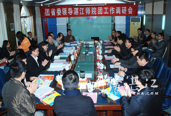 碧海银沙网12月5日讯 12月2日上午,团省委副书记曾颖如、学校部部长张文杰、副部长张育广一行在团市委书记吴国雄、副书记雷电的陪同下,莅临湛江师范学院调研共青团工作。该校党委梁英书记、副书记黄钢,副院长李江凌等领导和老师,以及各二级学院基层团委书记出席了会议。