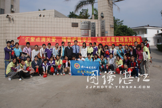 碧海银沙网11月29日讯 26日上午,湛师法政学院社会工作协会开展以“汇聚点滴关爱,共筑健康心灵;情牵戒毒学员,社工伴你前行”为主题的特色活动。该协会全体成员在老师的带领下,前往霞山劳教所对戒毒者进行义务帮助工作。
