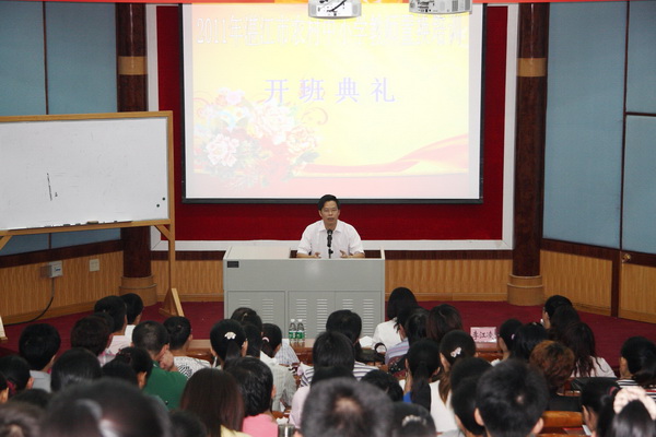 湛江师范学院罗海鸥院长首先致辞。他在致辞中首先表示了欢迎与感谢:欢迎全体来自农村中小学一线的参训学员;欢迎与感谢省教育厅、市教育局领导在百忙中前来参加开班典礼。同时表达了他的敬意与祝福:学员大部分来自农村中小学,是农村学生的启蒙者,对农村学生具有全面性、基础性和先导性的影响,是值得尊敬的。罗院长强调,没有好的老师,就没有好的教学质量,教育的差距就是教师的差距。目前各级行政部门对教师职业都特别重视,省政府还专门出台了加强教师队伍建设的意见。他表示,希望老师们在短短二十天时间里,珍惜机会,认真学习,加强交流,争取进步。最后,罗院长介绍了湛师的办学历史与现状、发展定位与规划,并表示对湛江师范学院未来发展充满着信心和期望。