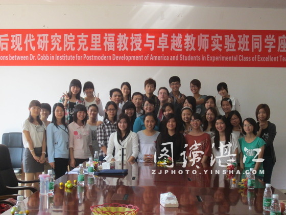 碧海银沙网11月1日讯 10月30日上午,中美后现代发展研究院高级研究员克里福德•科布教授应湛江师范学院邀请,在紫荆楼401会议室举行座谈会。参加此次座谈会的,有该校思政部袁铎教授及卓越教师实验班的全体学生。座谈会由该校教育研究院左兵博士主持。