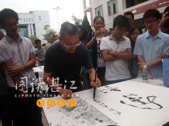 比赛现场,参赛的老师身先士卒,即席挥毫。而学生们则在老师的熏陶下,也尽情地挥笔书写,顿时,墨香环绕整个现场,充满舞文弄墨的气息。期间,宋立民老师还以左手写反字的“惊人之举”更是引来了众多老师和同学的驻足观看,现场的某位同学对笔者说:“我非常钦佩宋老师的书法,课后一定要更加努力练习,争取达到宋老师的境界!”