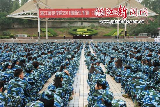 据悉,湛师2011年新生军训,从10月8日至30日止,分两批进行,均由中国人民解放军91487部队承训。第一批参训的有七个学院新生共两千四百多人;第二批参训的为外语院、信息科学与技术学院、生命科学与技术学院、数学与计算机学院、体育科学学院、物理科学与技术学院、开放学院约两千四百名新生。