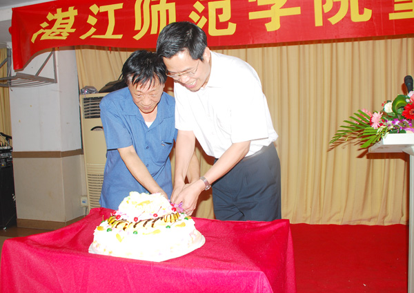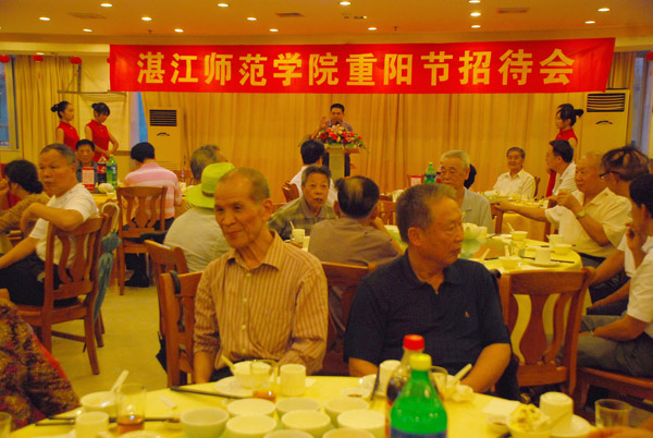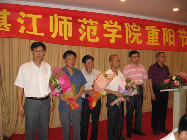 为了庆祝重阳节,湛江师范学院还举办了隆重的招待会,并为90岁、80岁、70岁的寿星送上慰问金和鲜花。