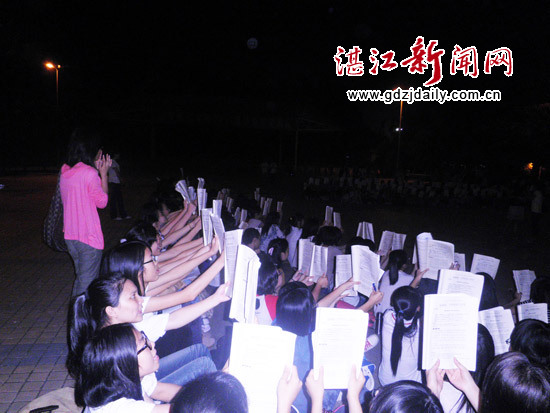 湛江新闻网9月27日讯 一,二,十,两百多!2011年9月26日晚,湛师寸金广场上有两百多人坐在地上,两队人分批对抗!
