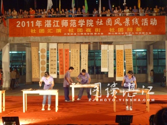 碧海银沙网9月26日讯 9月24日晚,由湛师团委、学生社团联合会主办的“社团风景线”活动在学校体育馆前举行。本次的“社团风景线”活动包括三部分内容:社团汇演、社团夜街、社团招新。湛师团委李发武副书记亲临现场察看并指导活动的开展。