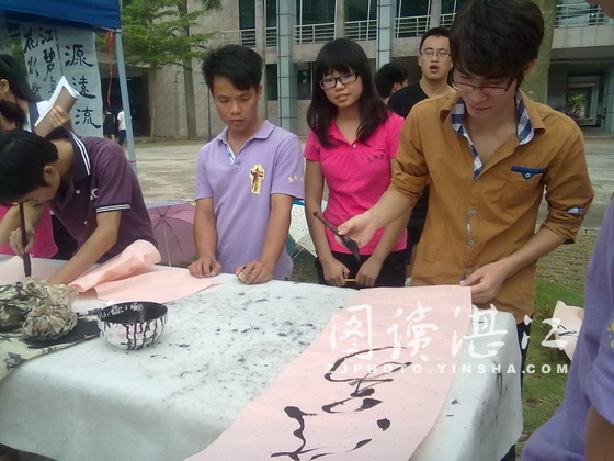 碧海银沙网9月26日讯 青春社团手拉手,和谐校园心连心。9月25日上午,湛江师范学院校内各大社团以设点、海报展示、作品展示的形式在体育馆门前进行招新宣传活动,争取以最快的速度汲取11级“新血液”。