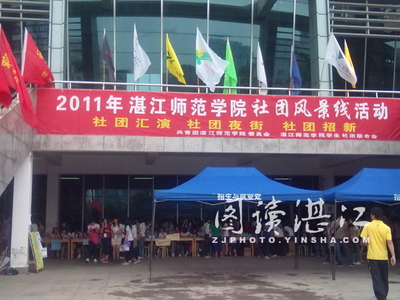 一大早,体育馆门前早已水泄不通,挤满了渴望加入社团并且大展风采的11级新生。伴随着社团的精彩展示,以及社团报名点前拥挤的人群,湛江师范学院2011年社团招新活动正式开始了。