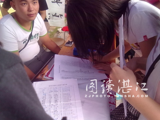 刚参加完第七届中国(广州)大学生戏剧节,今天早上五点多才回到学校的雷雨话剧社成员东亮和玮珊,还没来得及休息,一大早就赶去该社团的招新“大本营”帮忙招新了,笔者在现场也看到,前来该社团咨询和报名的同学也不少,据玮珊介绍,早上一大早就有不少同学来报名了,但目前具体有多少人报名,还没有统计好。