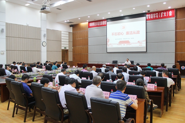 岭师新闻中心讯:9月29日下午,我校在国际会议厅举行第五场党委中心组理论学习“不忘初心、牢记使命”主题教育专题学习(扩大)会,开展“筑牢纪律底线,担当作为促发展”集中学习。湛江市纪委常委、市委巡察办主任张宗胜应邀作廉洁从政警示教育辅导报告。
