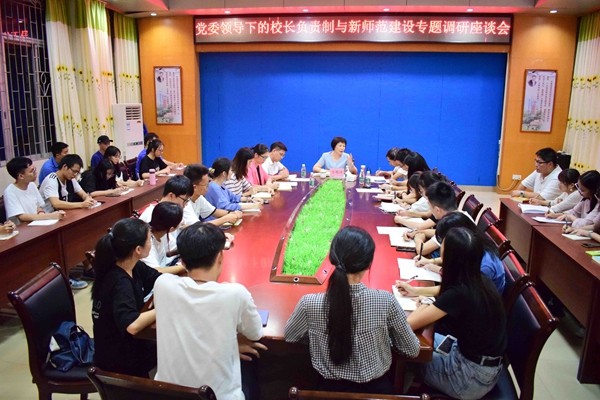 岭师新闻中心讯:10月9号晚上,兰艳泽校长在鸿园四楼校团委会议室主持召开学生代表座谈会,开展“不忘初心、牢记使命”主题教育,就落实党委领导下的校长负责制、推进新师范建设和提高办学质量、办学层次听取学生的意见。