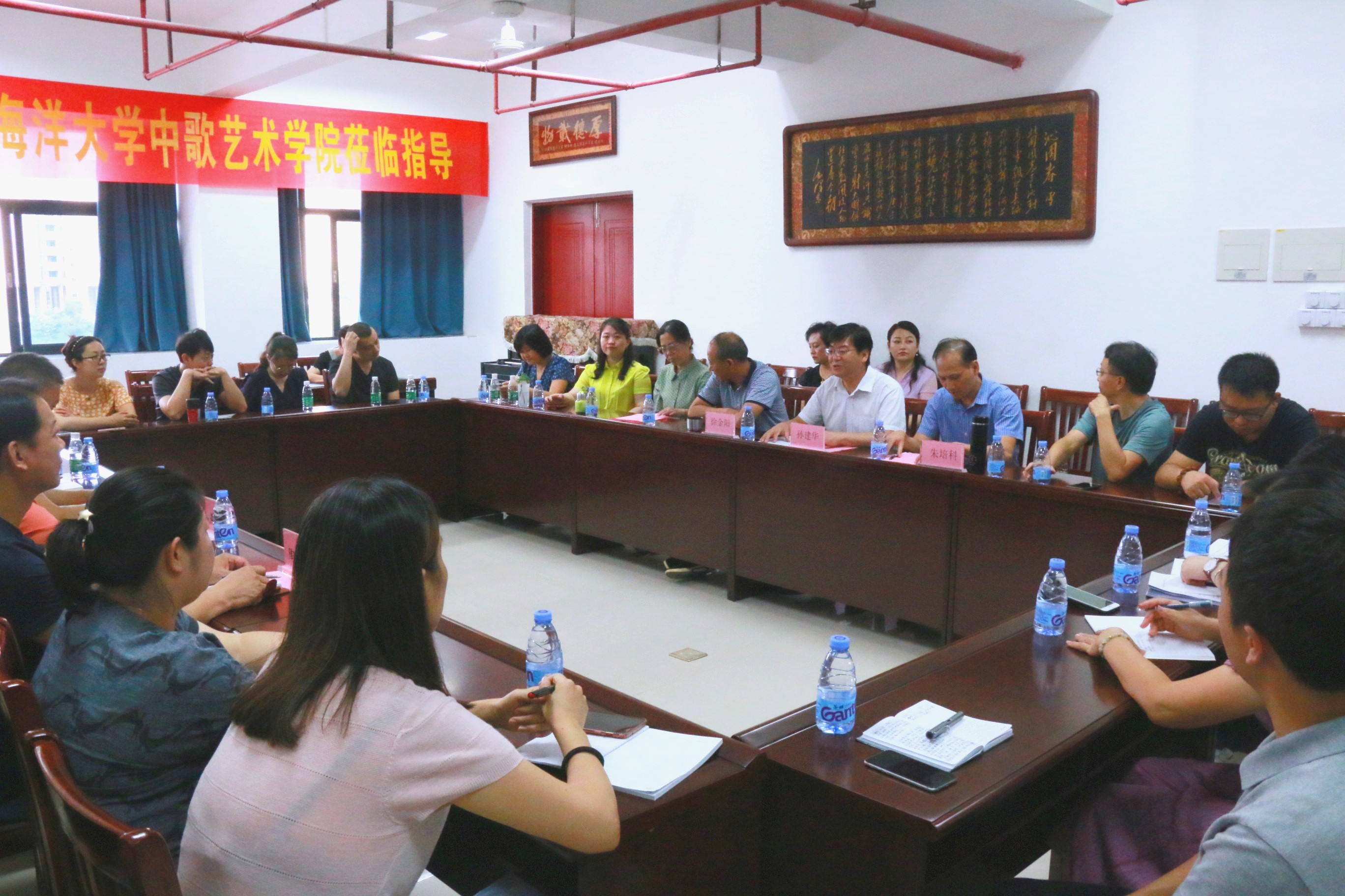 10月18日下午,广东海洋大学中歌艺术学院副院长罗小燕一行18人莅临我院交流。我院孙建华院长,徐金阳副院长,朱培科副院长在新艺术楼会议室热情接待了客人,我院多名教学科研骨干教师也参与了本次座谈会,双方就开展“不忘初心、牢记使命”主题教育、科研等工作进行交流。