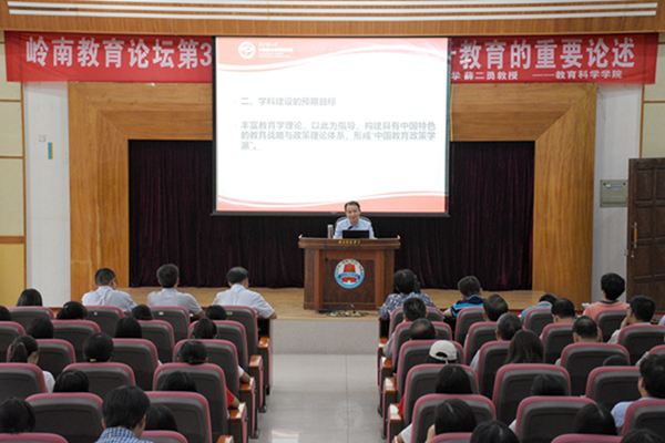 10月24日下午,教科院在图书馆学术报告厅举办第三期岭南教育论坛。北京师范大学教育学部、中国教育与社会发展研究院教授、博士生导师、教育部青年学者薛二勇应邀作《习近平总书记关于教育的重要论述》学术报告。