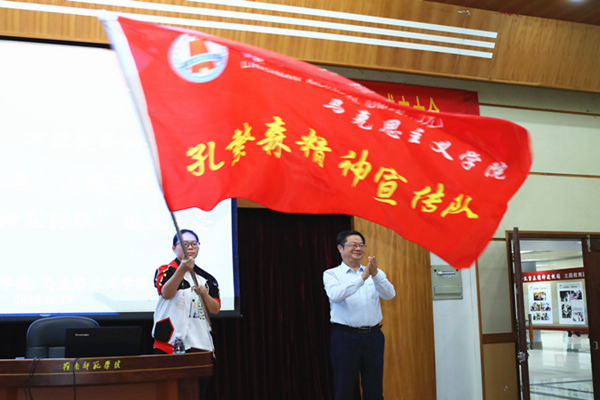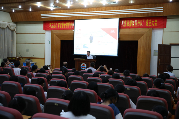 学校马克思主义学院院长何增光主持会议。他表示,深入弘扬宣传孔繁森精神,是时代的需要,也是社会发展的要求;是深入开展“不忘初心、牢记使命”的主题教育和学校思政理论课建设改革创新的重要举措。成立“孔繁森精神宣传队”,让学生在学习理论同时也注重实践,在实践中不断提高自己。