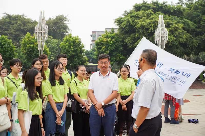 在谭平山先生的纪念碑前,学员们聆听“爱我湛江”历史知识服务队的解说,了解到谭平山先生为国家和民族的伟大复兴事业奋斗终身的历史故事。并通过瞻仰先生的雕像,进一步体会到了他忧国忧民,无私奉献的精神,坚定了学员们为祖国繁荣富强贡献力量的决心。