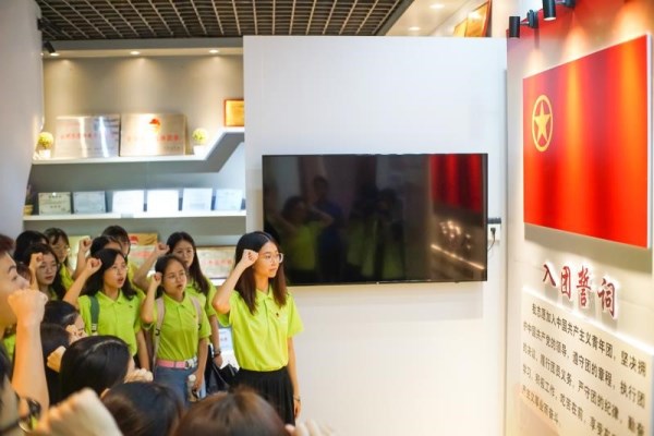 全体青马学员参观学校共青团新世纪展览馆,通过图文声像形式,生动感受新世纪以来岭南师范学院共青团在改革中创新、在青春中奋斗、在奋斗中收获的历程。在鲜艳的共青团团旗下,学员们高举右拳,激昂宣誓,拉开了本次特别团活动的序幕。