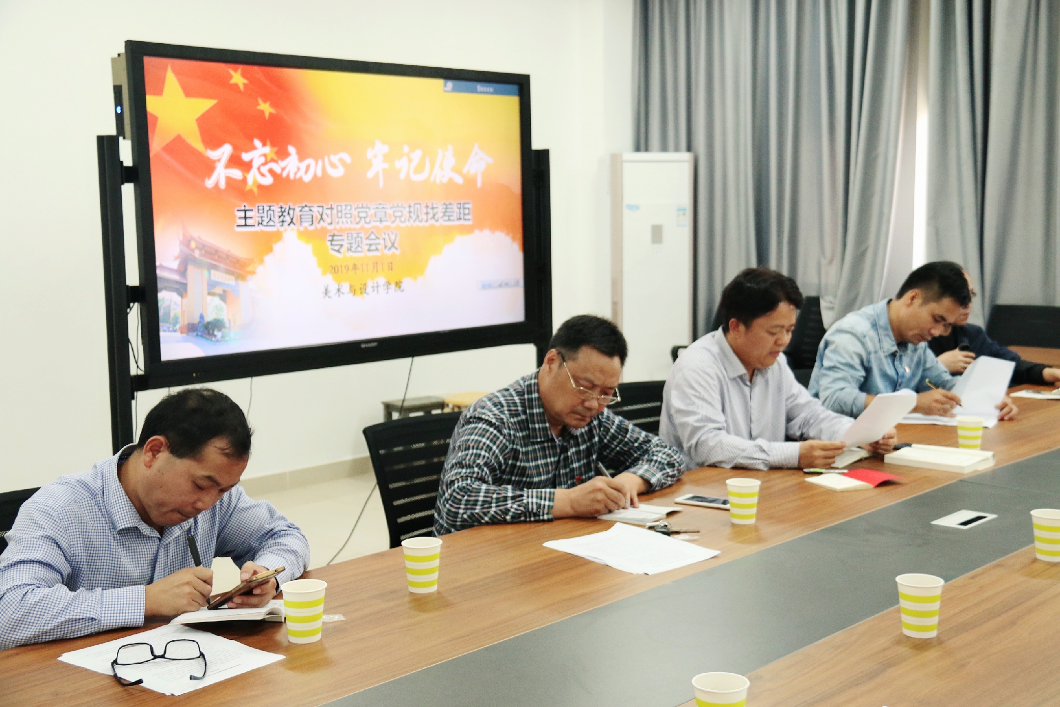 为深入学习贯彻习近平总书记关于“不忘初心、牢记使命”的重要论述,主动检视自我、修正错误、明确努力方向,美术与设计学院领导班子于11月1日下午4:30在艺术楼201召开对照党章党规找差距主题教育专题会议。出席本次会议的有巨云和院长、李德深副书记、叶建仔副书记以及乔志强、彭飞副院长。