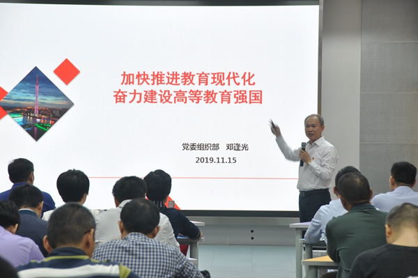 11月15日上午,学校“习近平总书记关于教育的重要论述”宣讲团成员、党委常委、党委组织部统战部部长邓逢光同志应邀到未来教育空间站作题为“加快推进教育现代化,奋力建设高等教育强国”的宣讲。