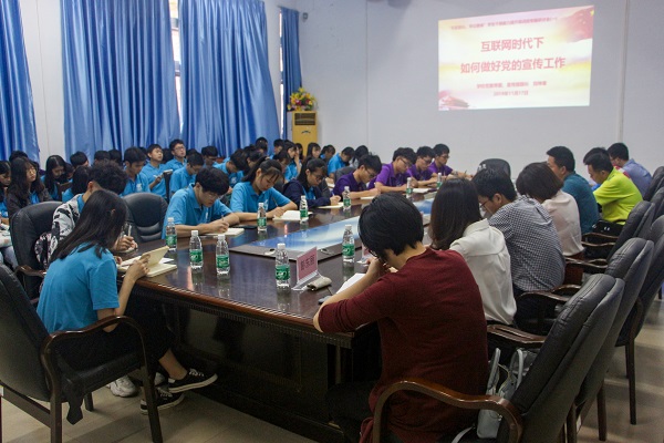 刘坤章作《落实“四个”服务使命任务,加强高校社会主义意识形态凝聚力和引领力建设》专题辅导报告。他指出,信息院非常重视宣传工作,努力探索“大宣传”的工作机制,能为学校宣传工作打好基础。并结合习近平总书记关于教育的重要论述、党的宣传思想工作重要精神以及学院宣传工作做了专题辅导。同时,对宣传机构作出“体现话语权,传承机构特色”的宣传工作建议、对新闻写作事业目前“要求更高,挑战更大”的形势作出具体指导,并结合中共中央提出的“大宣传”理念以及服务宗旨,对学生干部的综合素质培养以及意识形态方面作出了深刻解析。他提出,学生干部要在努力增长知识和见识、培养奋斗精神、提高综合素质上下功夫。