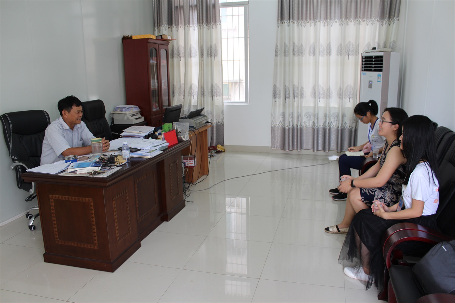 遂城八小的叶康发主任接见了邸老师。在此谈话中,叶主任和邸老师的共同理念是学生安全至上。叶主任表示愿尽己所能为实践队提供帮助,同时,他对实践队员提出两点要求:一是要有良好的卫生习惯,二是爱护学校的公共财物,队员们要以身作则开展教学工作。邸老师对叶主任的大力支持表示了深深的感谢。