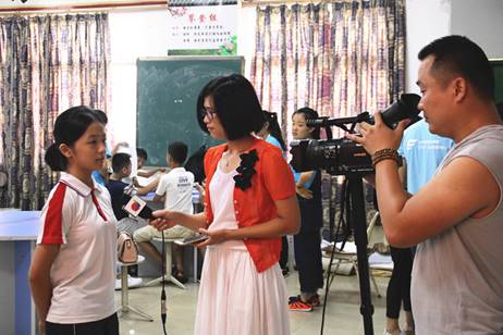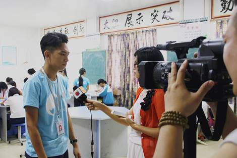 7月13日上午9时许,徐闻县新闻电视台的工作人员来到“博艺”社会实践队的实践基地——徐闻县第五中学,对“博艺”社会实践队的课堂进行了拍摄报道,并对实践队的队长和学生进行了采访。