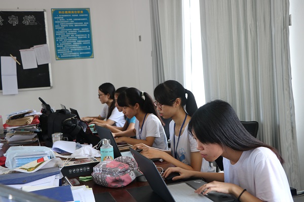 在许屋学校的某个角落,有这么一群人,不止要面对学生,更多的他们面对的是电脑屏幕上的字字句句。他们则是岭师数计学院传承实践队奋斗在文字新闻前线的宣传组。撰文是他们的任务,熬夜是他们的日常。白天伴随他们写稿的是热辣的太阳,而夜晚伴随这着他们发稿的是农田的蛙叫。