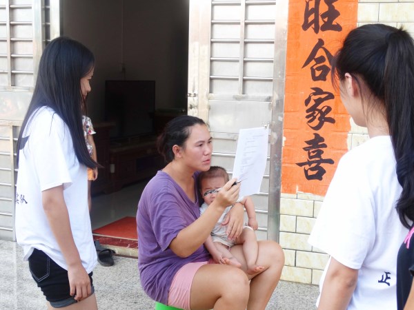 7月13日上午,由4人组成的“正心”调研队带上调研表格以及摄像机冒着炎炎烈日开始在三塘村展开调研。此次的调研目标主要是以问题的形式向20位学生家长进行提问。于是,调研队开始逐一对20名家长进行走访提问。调研队的队员们分工协作,其中一人负责带路,带领调研组到学生家中进行“家访”,另一人负责在调研路上的拍照和摄影,还有两人则负责与家长们进行沟通和交流并引导他们正确填写好调查问卷。