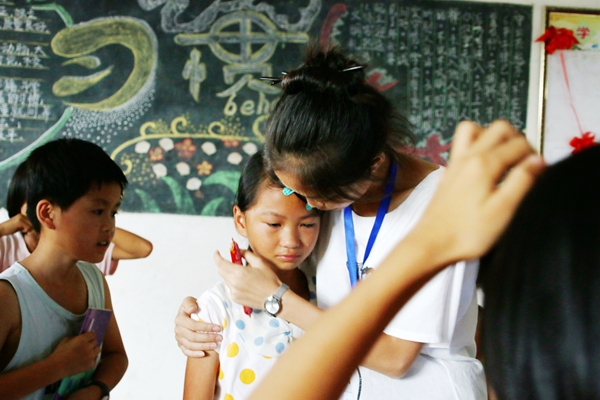 欢送会接近尾声,班主任徐怡发表了对孩子们的寄语和期望,还为每一个精心准备了礼物--写上祝福的纪念本。她还对孩子们表达对孩子们一直以来的支持和配合的感谢,希望孩子们可以在这十天里有所收获,做一个更好的自己。孩子们深受感动,忍不住落下不舍的泪水。