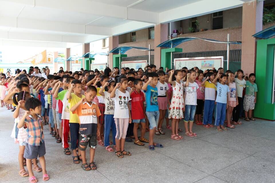 此后,进入学生宣誓环节。在领誓队员的带领下,同学们怀着满腔热情宣读誓言,声音铿锵有力,眼里充满了喜悦与期待。我们相信,本次支教活动会使孩子们的暑假更加丰富多彩。
