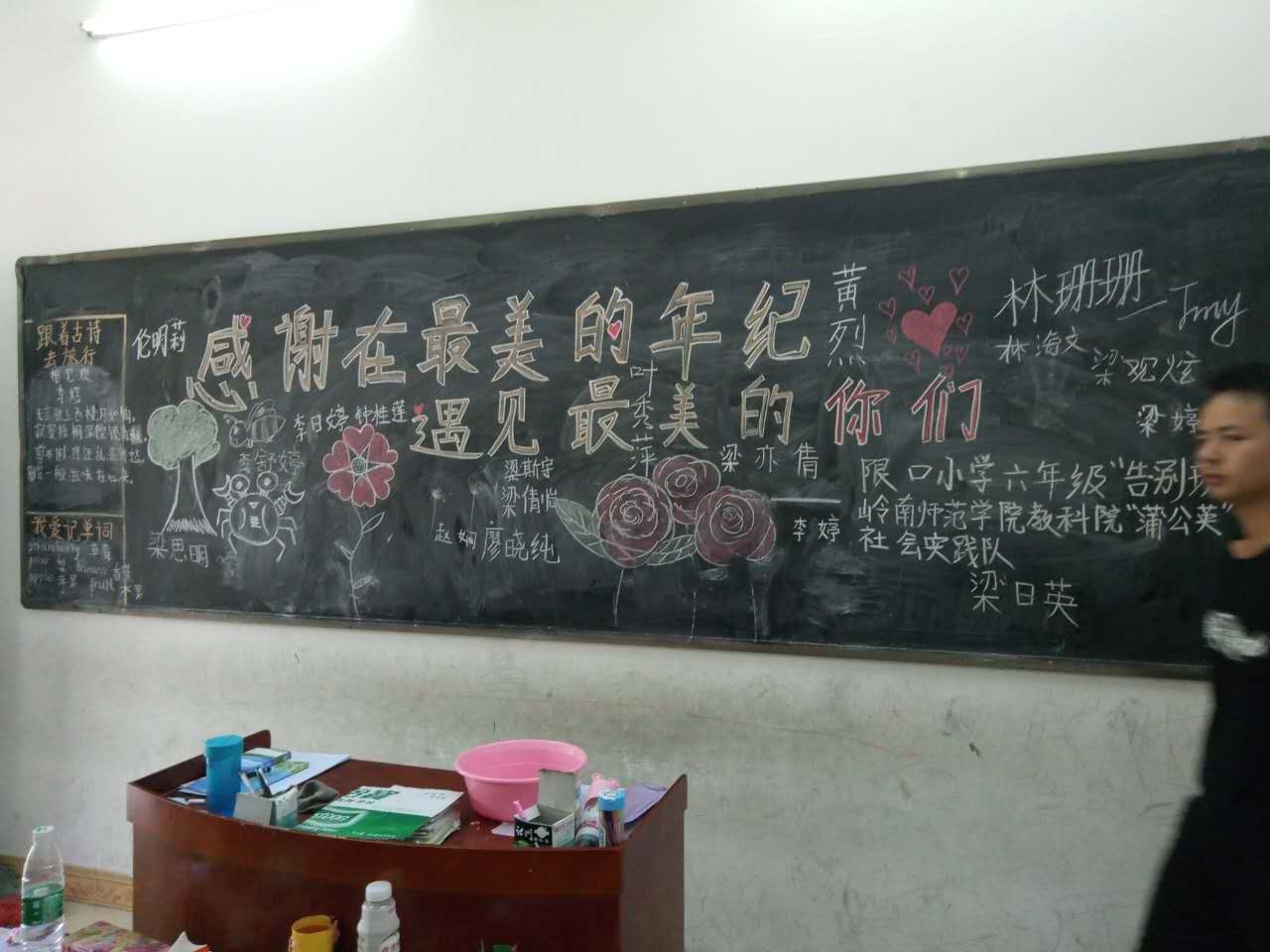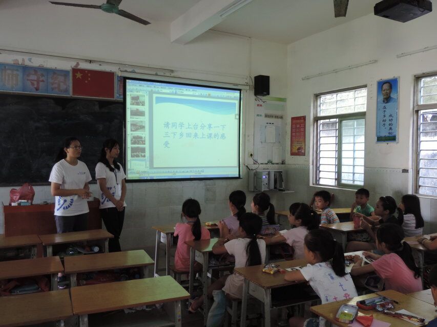 7月17日上午,在这个风卷残云的台风天里,“蒲公英”社会实践队的班主任们在三到六年级的课室展开了最后一次班会——告别班会。