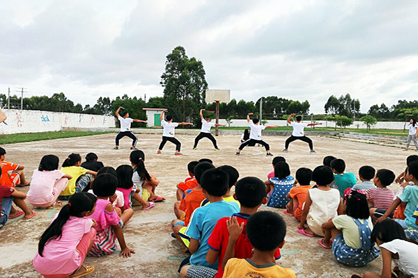 各班班主任清点好到场人数,确保学生安全后,在实践队队长何菲菲的主持下,开幕式正式召开。支教人员为各位对我们工作给予支持的学生们上演了精心准备的各种表演节目,其中包括:舞蹈、音乐、武术等项目。表演节目过后,支教的老师们和小朋友们进行有趣精彩的游戏互动,现场许多充满童趣的游戏在支教老师和小朋友的共同配合下顺利完成。