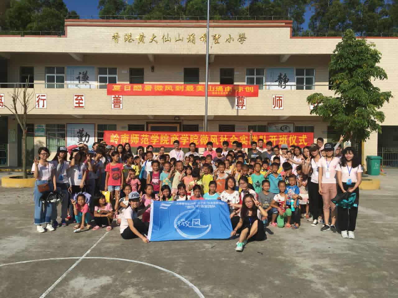 烈日当空,暑气熏蒸。商学院微风社会实践队于7月9日在本次三下乡基地——山涌小学的操场上举行开班仪式。出席本次活动的有黄永斯主任、山埇村的村干部及各位家长和微风社会实践队的代表。