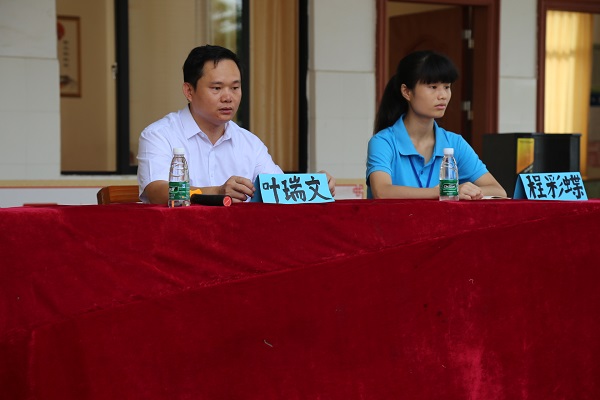 叶瑞文校长为本次典礼发言。今年已经是宣翔梦扬社会实践队第三年来到江车小学开展社会实践活动了。校长在发言中谈到,江车小学因为师资问题,缺少第二课堂的教育,他希望学生能够珍惜这次机会,认真学习舞蹈、音乐等课程,丰富自己的学习生活。也要配合老师上课并且主动去学习支教老师的奋斗精神,为自己的大学梦时刻储存力量。校长高度肯定了我们宣翔梦扬社会实践队这支队伍,他认为我们是学生的榜样,所以他希望学生能够发扬农村孩子不怕辛苦,不怕累,不怕晒的精神,坚持连续10天的学习。他相信学生能够在这10天中增长见识,拓宽视野,在收获知识的同时更得到快乐。最后,他强调学生要高度重视安全。按照之前的规矩,把每天的安全工作做好,做到学生学得快乐,老师教得踏实,让三下乡社会实践活动有序顺利的进行。