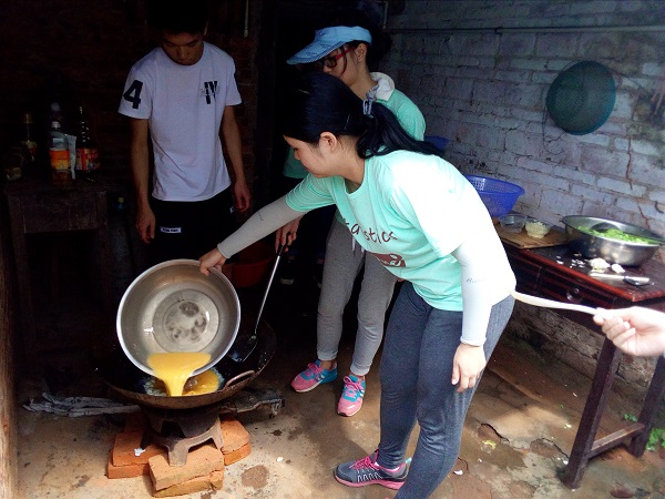 7月10日,这是三下乡的第二天,天还是灰蒙蒙的一片,偶泛鱼肚白,余光缓缓地映入眼帘。向阳社会实践队后勤组的队员在凌晨5:30分就早早开始了煮饭的工作,队员尽自己的能力把队伍的伙食做得有型有色。