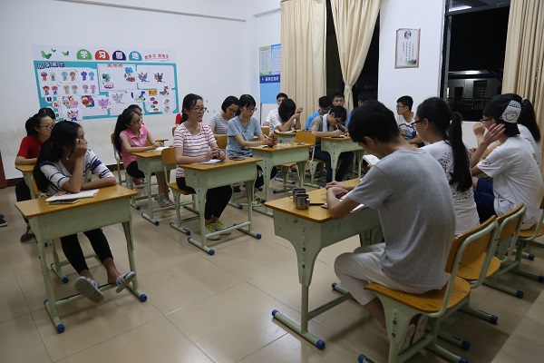 一路平静,12点时,我们来到了茂名市茂南区的江车小学。小学位于一个宁静的小村庄,校园环境优美,一幢外墙贴着橙黄色瓷砖的教学楼映入眼帘。校长和几名学生热情的迎接我们的到来,他们带着我们入住新宿舍,帮我们整理行李。他们的热情更加坚定了我们要把三下乡支教活动做大做的决心。一直忙到下午一点半,我们终于吃上了午饭。这是我们的第一顿午餐,虽然只有两菜一汤,却是我吃过的无比美味的一餐,因为饭和菜都是我们队员们亲手用心做出来的。下午,学生们早早的来到学校,队员们热情的与学生交谈,学生都很大胆的回应我们,我们在孩子们身上感受了他们的无限活力与激情。