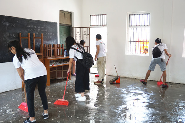 在出征的青春路上,“乐事”社会实践队提着大包小包的行李到达上车地点。太阳高照,队员们仍互相帮忙,十分利落地把行李装进车。“乐事”社会实践队在刚开始时就已经体现出了不辞辛苦、团结协作的团队精神,展示了实践队员的良好精神风貌。经过一个多小时的车程,实践队来到了湛江市廉江市石角镇山合陆轴小学。村民、小学生和老师对他们的到来表示了热烈的欢迎。“乐事”社会实践队对学校进行大扫除,学校变得焕然一新。队员们分工合作,有的队员帮忙着安顿好行李,有的队员帮忙搭蚊帐,而后勤组的队员则在为他们准备第一顿丰盛的晚饭。操场上,校长和队员们一起打篮球。现场气氛活跃。