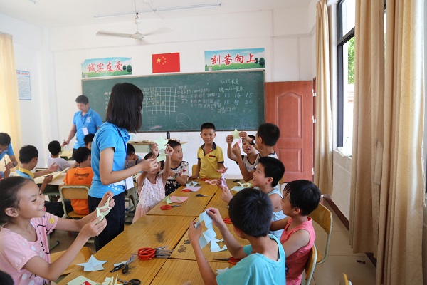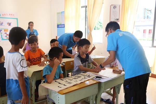 是的,江车小学是一个在农村的小学,学校里的50多名学生均是农村孩子。他们在农村土生土长,家在农村,他们也一直在农村。据我观察,他们身上有一个明显的特点,那就是他们的肤色都较黝黑。我自认我自己就是一个皮肤很黑的人,但是那些孩子的肤色比我黑上了好几个层次啊!除此之外,即使每天中午太阳高照,他们依然早早的来到学校,他们的学习热情如阳光般热烈。或许他们真的是不怕晒的,实实在在的证据是根本不能造假。而且他们是不怕苦,不怕累的。江车小学规模小,硬件设备也不齐全。每间课室只有台高挂在墙上的慢悠悠转动的风扇,风力甚小,根本不能抵挡炎炎夏日的高温。学生们在课室上课如同在蒸笼里,热得大汗淋漓,但是他们仍然安安静静的坐在座位上认真听老师讲课。有几次走近那些孩子面前一看,他们的额前布满了汗水。他们对待学习的态度和坚持的精神值得我们去学习。因为反观我自身的学习态度和行为,我真的觉得惭愧。我明明得到了在良好的学习环境里学习的机会,但是我却总是抱怨课室楼层高,没有电梯,没有空调等等。我没有好好珍惜来之不易的机会。今天才知道,我是身在福中不惜福。小孩子都可以忍受环境的恶劣,而我却挑三拣四,白白比他们多活了十几年了。