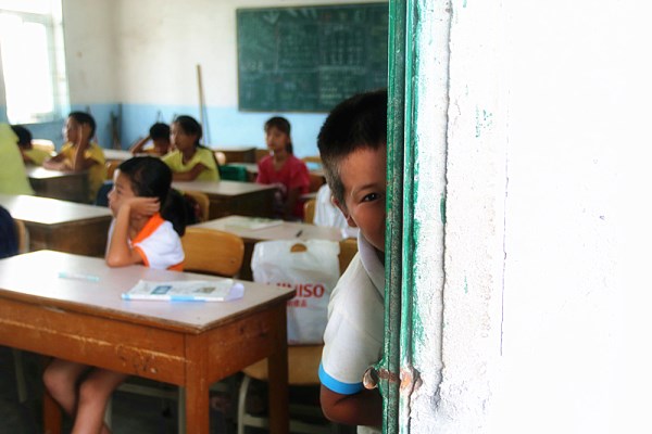照片中那个看起来很活泼快乐的孩子是白水小学五一班的一个学生,原本他是个机灵聪慧的孩子,但由于小时候的一次从楼梯上摔下来,脑子就出了点问题,原本聪明的孩子变得很迟钝,提笔写字都很困难。
