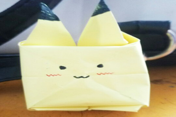 新鲜的事物总能吸引孩子天真的目光,比如,手工老师左手捏着的五颜六色的手工卡纸和右手捧着的“皮卡丘”。这就是今天的课堂主题,用卡纸折皮卡丘。