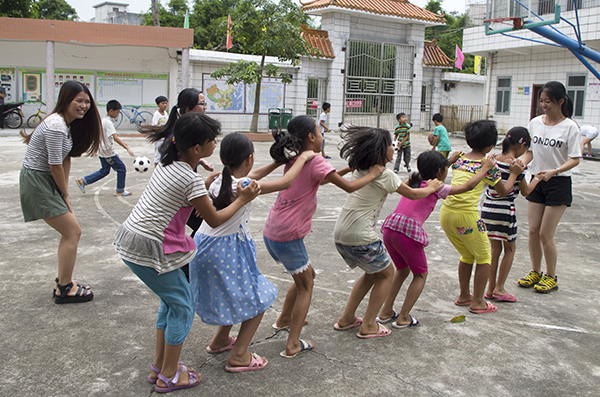 仅仅两天的接触,小朋友们就和小老师们建立了一段深厚的情谊。对于小学生,小老师们不仅是他们的老师,也是他们一起玩耍的小伙伴,是朋友。