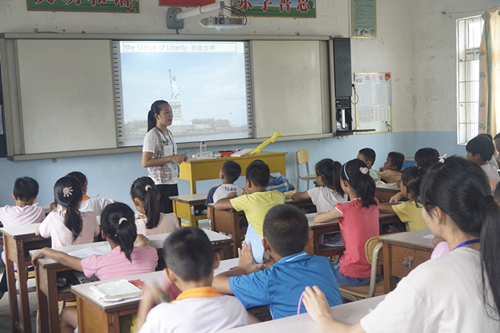 到了我自己上课的时候,很多孩子都拿着他们上节课用纸做的小花或者“钻石”送给我,每个人你说一句我说一句的,内心早已充满感动的我都不知道看谁了,总觉得他们每个人的眼睛就像是小星星一般扑闪扑闪个不停,我有些目不暇接了;还有他们七嘴八舌的喊着“老师老师”,让我心中充溢了满满的爱。而且,下课后,连那个“小霸王”都过来找我说想要把第二课堂换成街舞。“小霸王”虽然很调皮捣蛋,但是看着他就会觉得他以后肯定是一个很厉害的人!