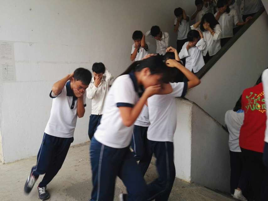 演练开始前,各班班主任需要在班里宣传安全演练知识和注意事项,并告知活动流程,注意安全,防止出现踩踏事件。活动一开始,师生就近蹲在课桌或重墙的墙根、墙角;保护好头部,尽量蜷缩身体,降低身体重心,缩小面积;视情况就近关闭火源、电源等。听到警钟长鸣后,教师迅速组织学生疏散,所有同学迅速起立,按照疏散路线秩序竟然的离开教师到达集结地点。各班在清点人数后,上报给指挥人员。指挥队员做了演练总结,总结说,第二次的演练比第一次好很多,动作规范了不少,并且速度也有提升。各班级均能按照事先预定疏散线路,迅速、有序到达指定地点集合;整个疏散过程历时不到2分钟,在各小组密切协作下,此次演练圆满完成,未发生任何意外事故。