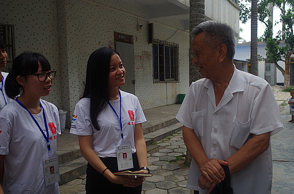 岭南师范学院文传学院“曦冀”社会实践队伍的支教活动在持续进行中,调研组组员也正紧张地准备调研的方案和前期工作。此前,调研组通过咨询有经验的调研人员,已经收集了一些相关的材料。为了进一步加快推进工作的准备,于12日上午,“曦冀”实践队调研组在支教基地——华港学校分校向有着丰富从事社会工作方面的经验、前来指导实践活动的田新民老人咨询了有关百姓村调研工作的一些建议。